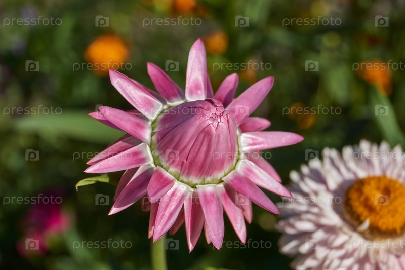 В саду цветет бессмертник (лат. Helichrysum) крупный род семейства Астровые (Asteraceae)