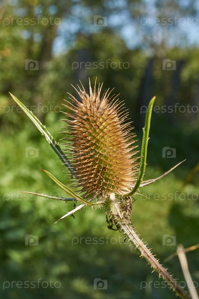В саду цветет дипсакус (лат. Dipsacus). семейство Дипсакоидные подсемейство двудольных растений семейства Жимолостных (лат. Caprifoliaceae)