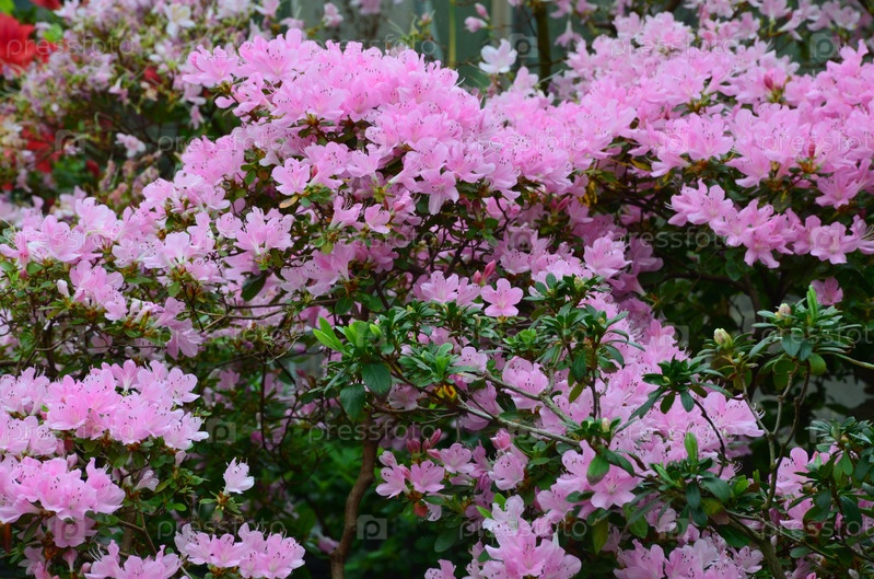 Красивый цветущий куст азалии (лат. azalea) с розовыми цветами