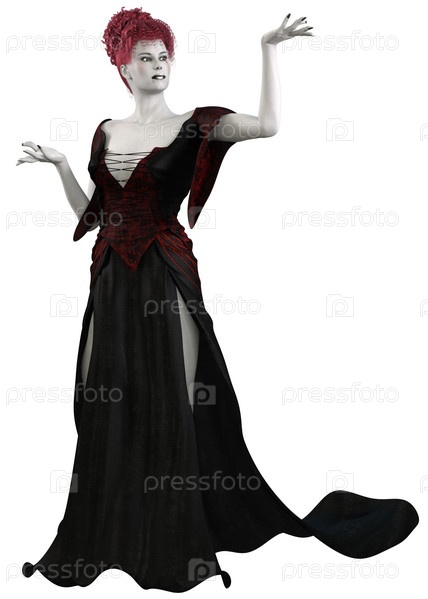 3D-ведьма в черно-красном наряде