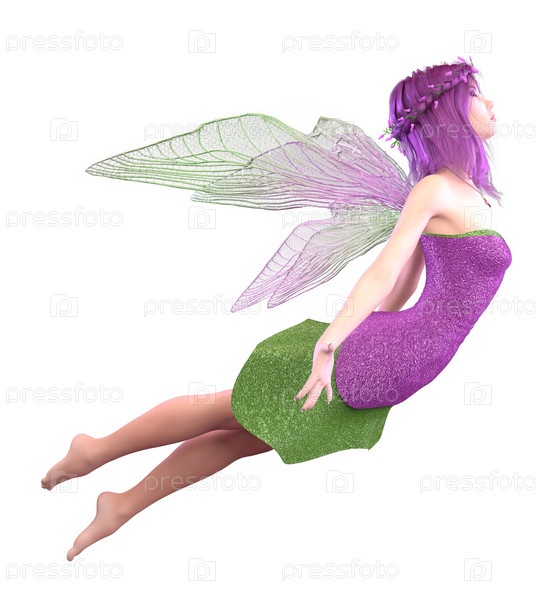 3D-фея в фиолетово-зеленой одежде