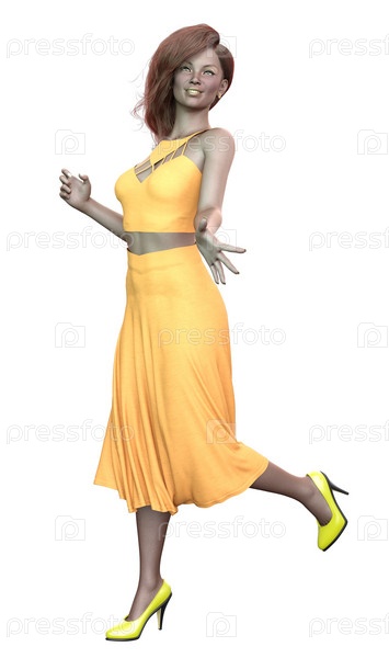 3D Девушка в оранжевом наряде