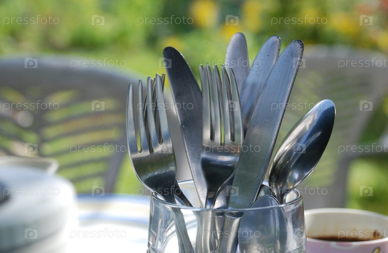 Металлические столовые приборы в стакане