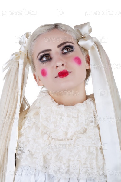 Красивая блондинка с длинными волосами и кожей как у куклы