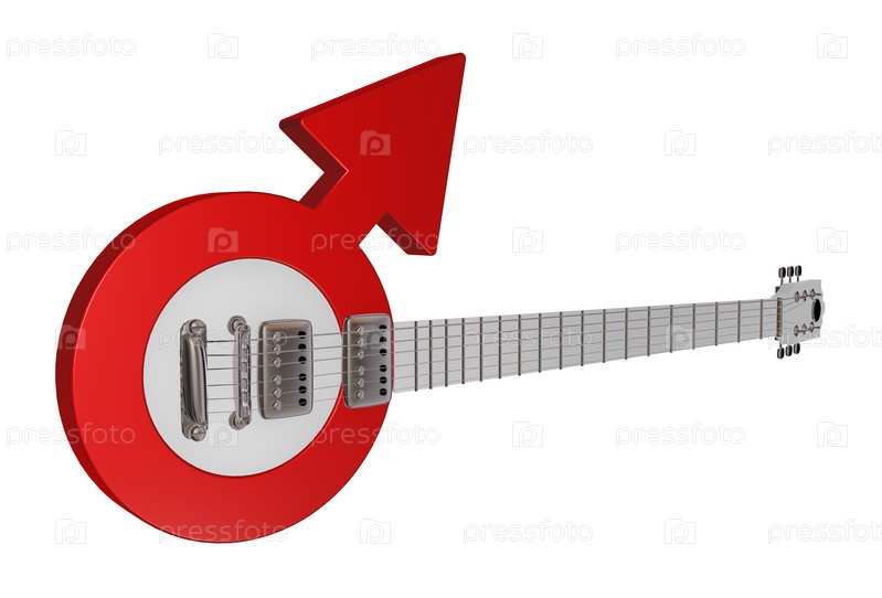 Мужской символ в виде гитары на белом фоне - 3d иллюстрация