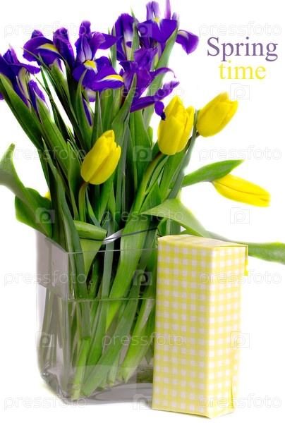 Квадратная ваза с весенними цветами и подарок