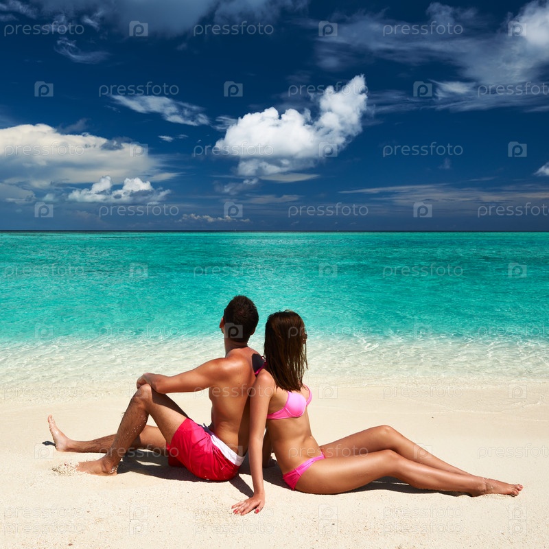 Пара на пляже на Мальдивах