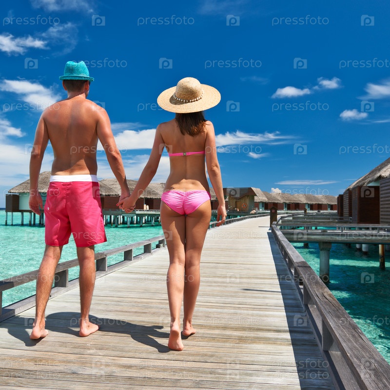 Пара на пристани на Мальдивах