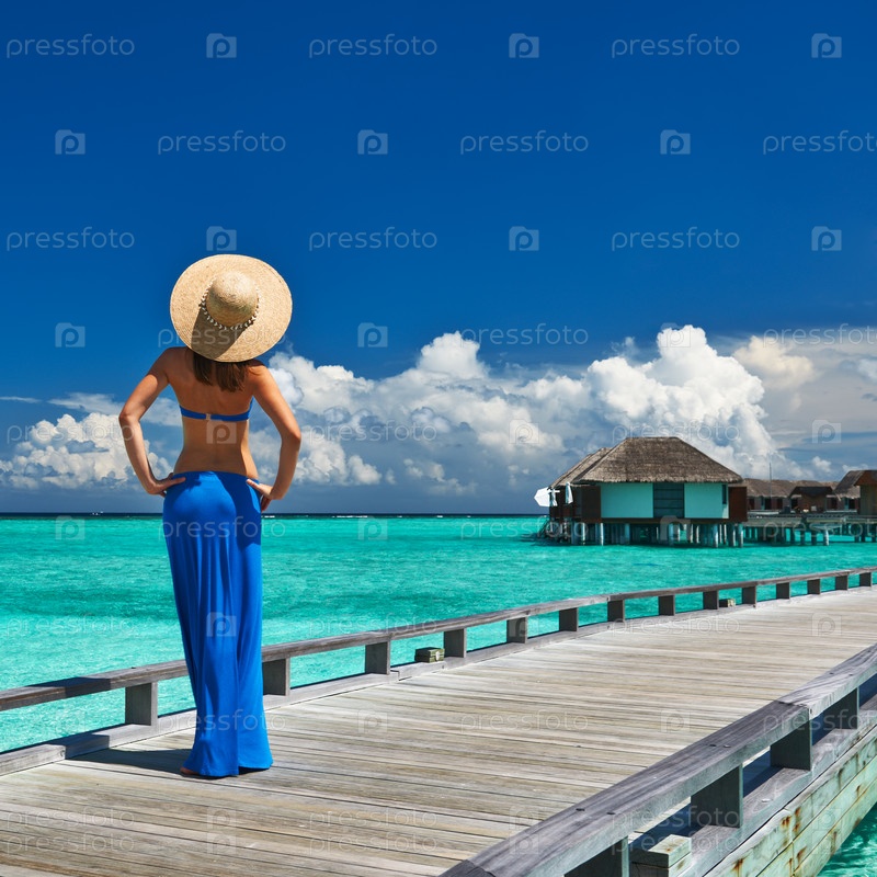 Женщина на пристани на Мальдивах