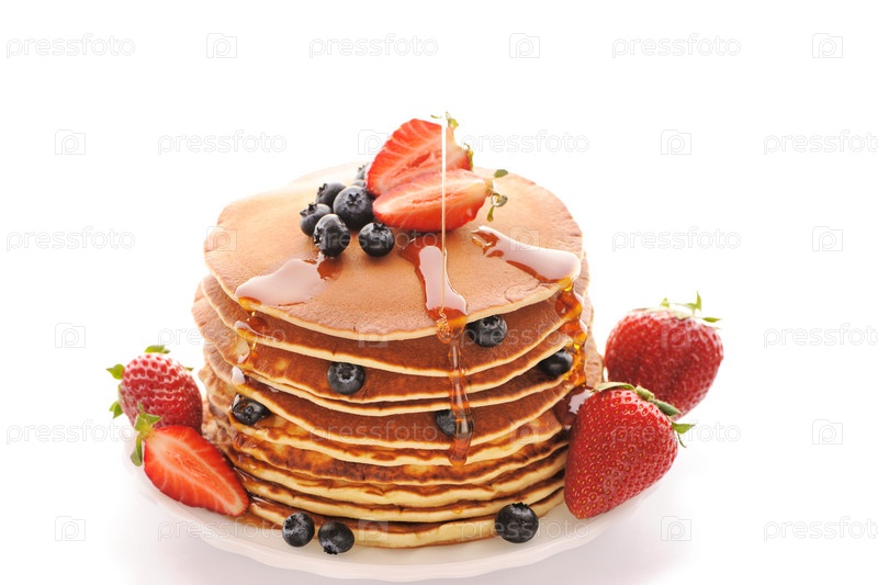 Блинчики с клубникой и голубикой