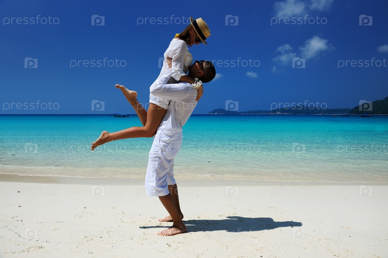 Пара в белом на пляже