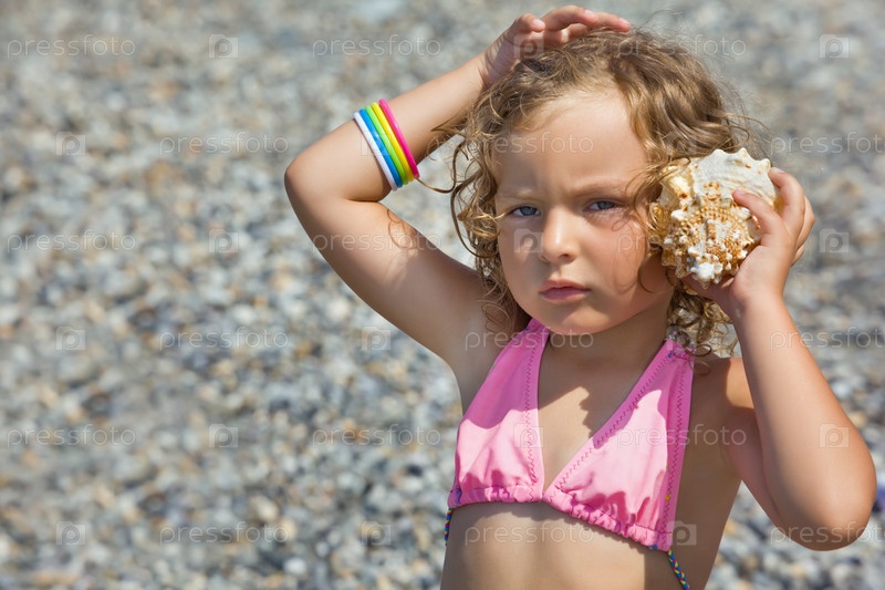 Девочка с ракушкой на берегу моря
