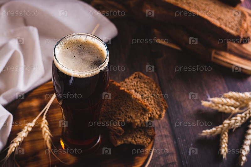 Стакан холодного кваса и ржаной хлеб для брожения на столе