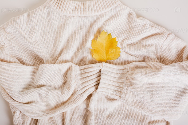 Уютный осенний свитер держит рукавами желтый осенний лист на виде сердца сверху