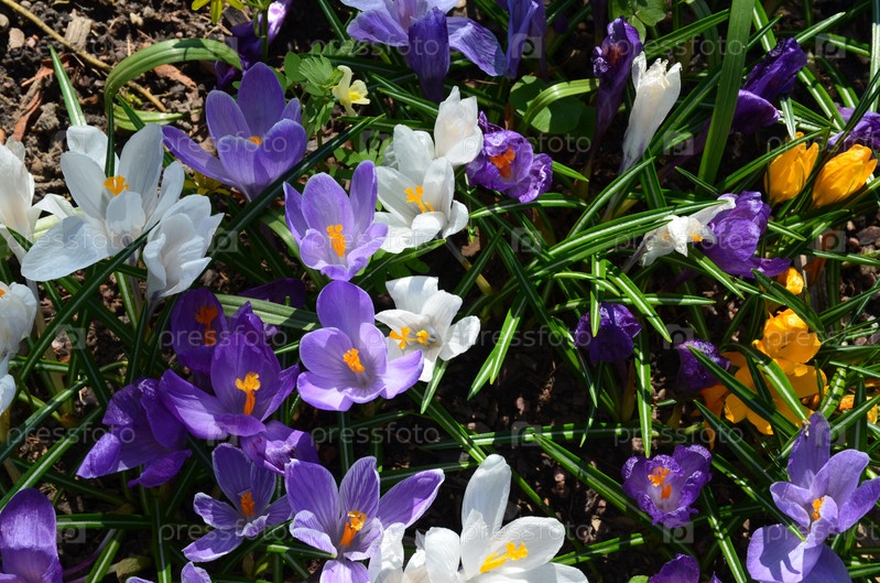 Многие цветы крокуса шафрана (лат. Crocus) разного цвета весной