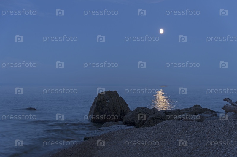 Луна над Байкалом. Большая Байкальская тропа. Иркутская область, Россия. Август