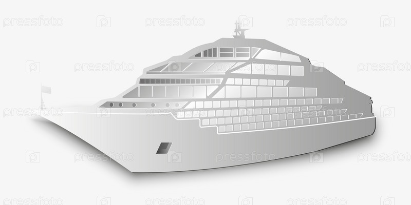 Большой роскошный круизный лайнер в светлых тонах, изолированный на белом фоне, векторная иллюстрация морского судна, подходящая для водных путешествий, и логотип отпуска на океане
