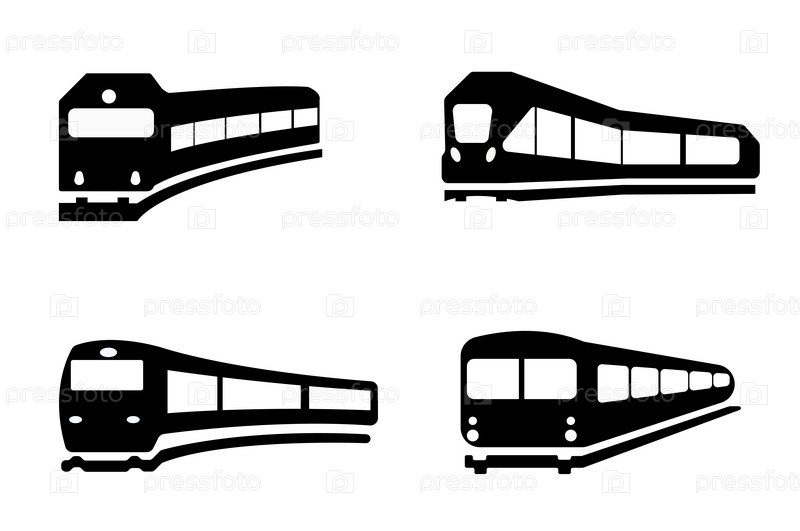 Набор иллюстраций значок черного поезда изолированный простой векторный знак на белом фоне, eps 10, силуэты устанавливают транспорт, железную дорогу и железные дороги, метро и метрополитен, рисование объектов, стиль логотипа
