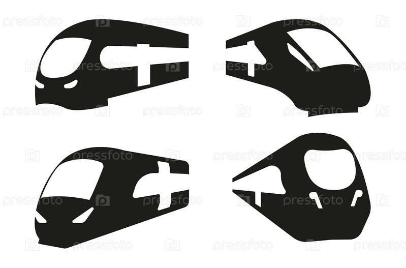 Набор поездов, силуэт железнодорожного транспорта