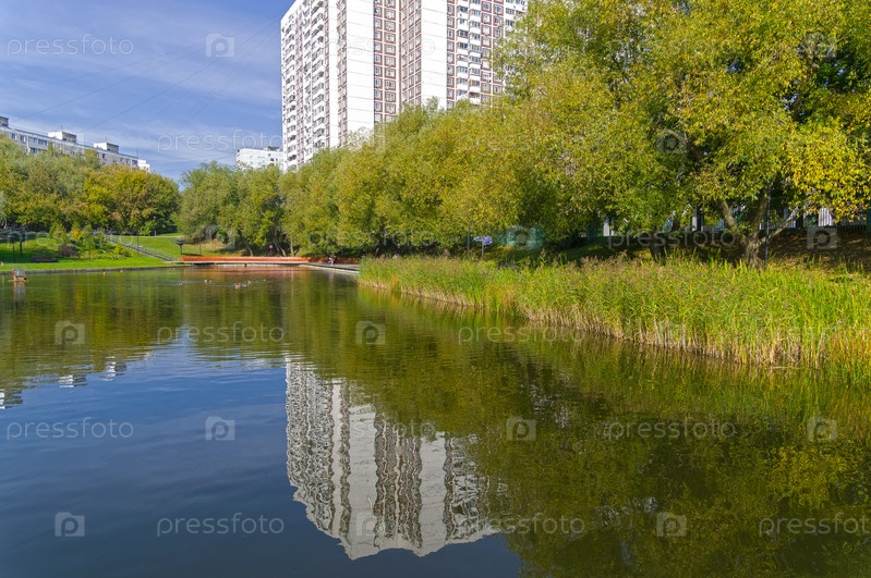 Малый Коньковский пруд. Москва, Юго-западный административный округ, улица Введенского. Солнечный день в сентябре