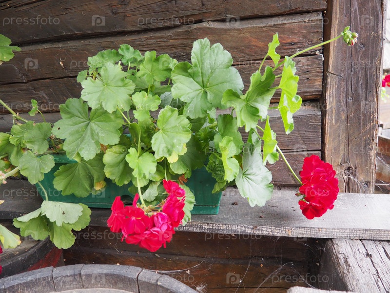 Красные зональные герани в дизайне. Pelargonium peltatum это вид пеларгонии, известный под общим названием Pelargonium grandiflorum. Журавль или журавль-клюв. Зеленые листья. Цветоводство и садоводство