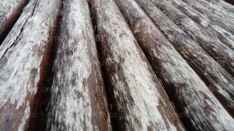 Влияние влаги на древесину. Строительный бревно для использования в строительстве без продольной распиловки. Ассортимент круглого леса. Фрагмент конструкции из оцилиндрованных деревянных бревен