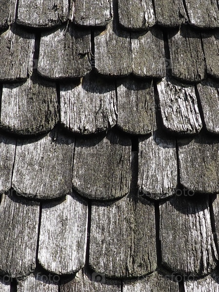 Черепица как традиционное сельское кровельное покрытие. Плитка из остроугольной поперечной плиты кровельного материала крупным планом. Деревянное зодчество древних мастеров-плотников. Естественный фон