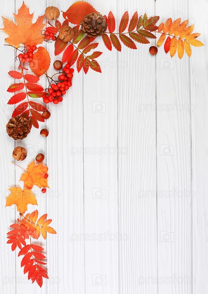 Рамка с кленовыми листьями, сосновыми шишками, орехами, тыквами и ягодами рябины, осенняя абстрактная композиция, концепции Дня Благодарения, сезонный фон, баннер или заставка, поздравительная открытка или приглашение с местом для текста, выборочный фокус