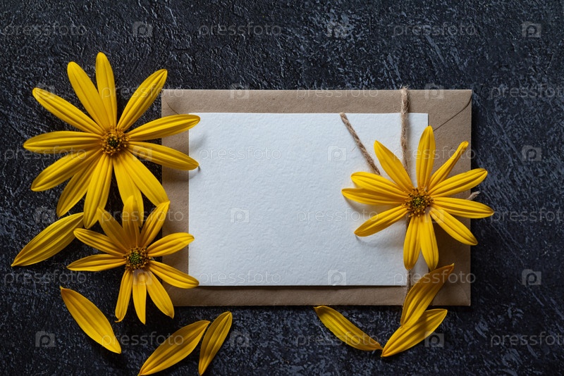 Подарочная карта с желтыми цветами на День матери. Место для текста