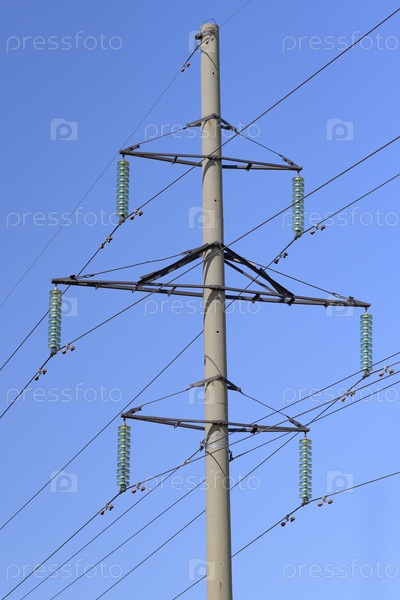 Крупный план передающей башни или электровышки на фоне неба. Они также известны как электрические опоры или электрические опоры