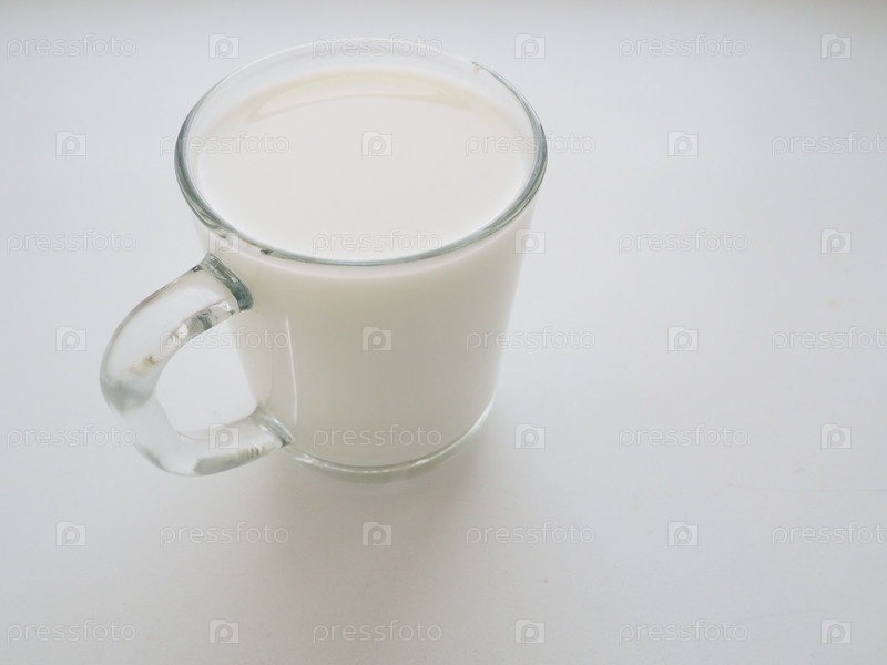 Стеклянная чашка с молоком на белом фоне. Диетическое белковое питание