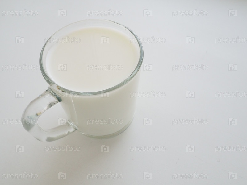 Стеклянная чашка с молоком на белом фоне. Диетическое белковое питание