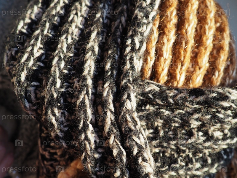 Вязаный шарф из объемной коричневой и оранжевой пряжи. Пышная машинная вязка. Вариант теплого гардероба на осенне-зимний период. Вязать лицевыми, изнаночными петлями. Уютный домашний натюрморт