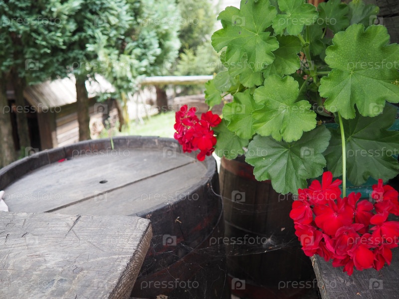 Красные зональные герани в дизайне. Pelargonium peltatum это вид пеларгонии, известный под общим названием Pelargonium grandiflorum. Журавль или журавль-клюв. Зеленые листья. Цветоводство и садоводство