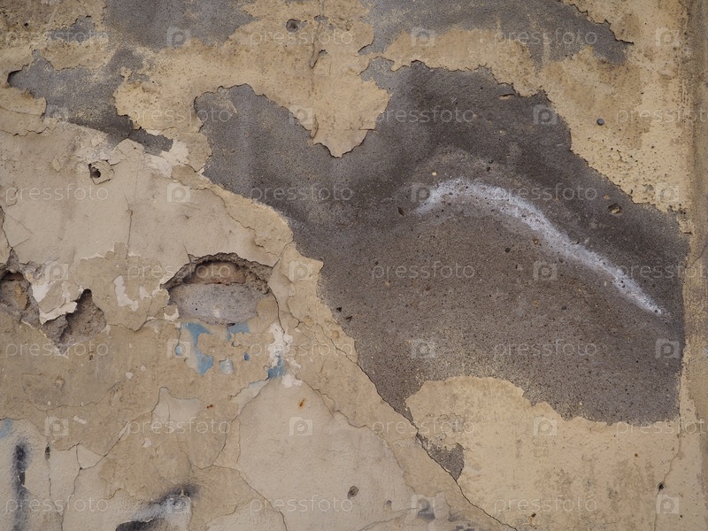 Текстура мокрой штукатурки стены для фона. Сырая штукатурка на стене здания. Ветхая поверхность, требующая ремонта. Строительные недостатки, сырость в зданиях и плесень