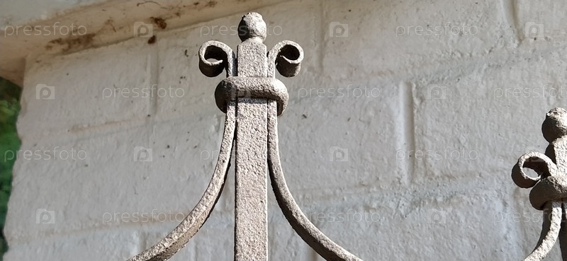 Кованый металлический забор. Металлический предмет. Красивые изогнутые линии с загнутыми краями. Работа по стали