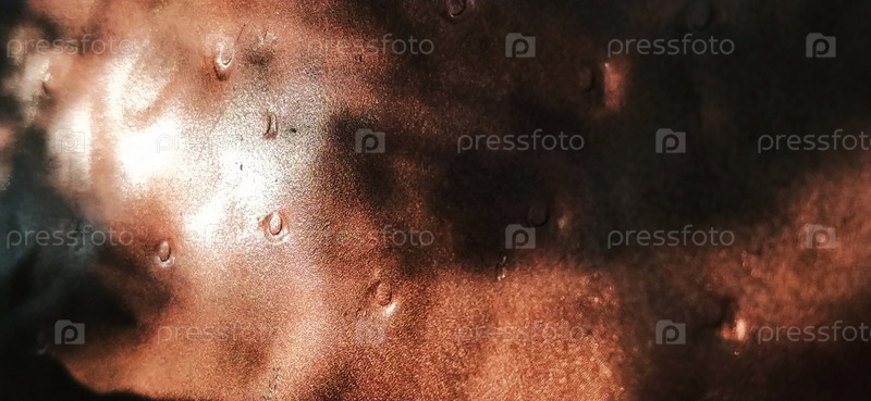 Бронзовая металлическая поверхность. Неровная текстура металла с царапинами, выбоинами и вмятинами. Красные, коричневые, оранжевые, бронзовые оттенки. Литье металла. Аппаратное обеспечение