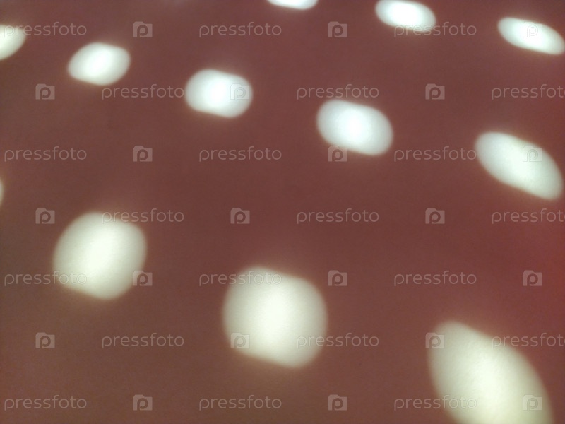 Красный фон с горошком. Лучи солнца проникают сквозь дыры в жалюзи и рисуют на цветной поверхности легкие размытые круги