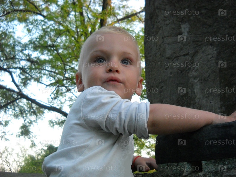 Маленький мальчик забрался на каменный памятник и повернул голову, прислушиваясь к зову матери