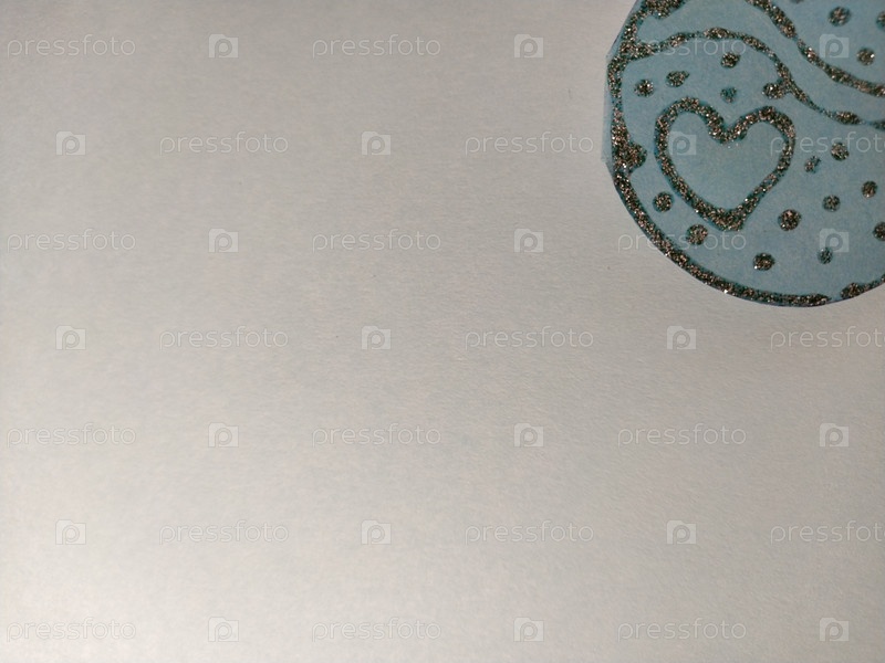 Серый фон. Справа вверху декоративная деталь из синей бумаги серебристого цвета с пайетками, расположенными в виде сердечка и плавными закругленными линиями