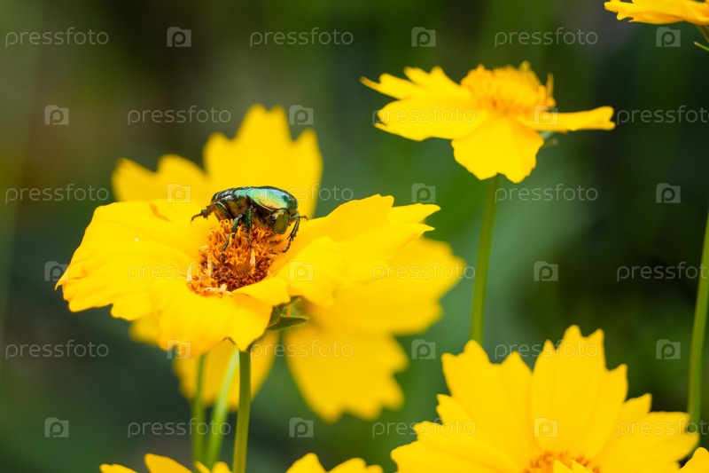 Жук ketonia aurata сидит на цветах в крупном плане