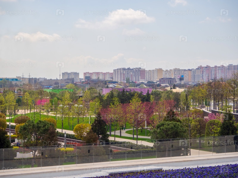Городской ландшафт. Вид на многоэтажные новостройки со стороны Галицкого парка в Краснодаре