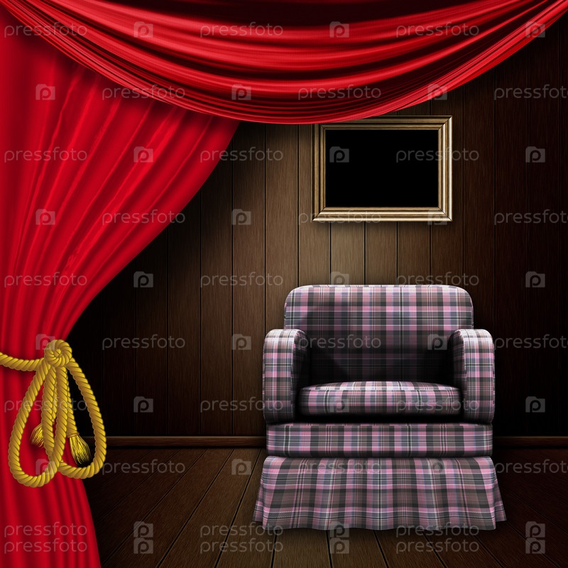 Деревянная комната с креслом и занавесом