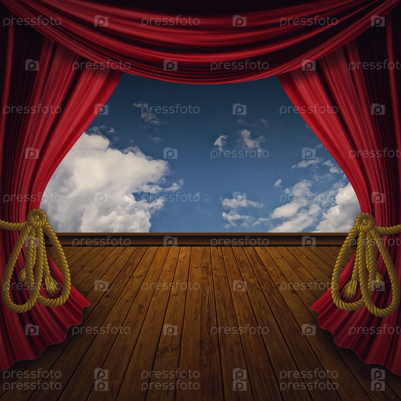 Красные старинные шторы с деревянным полом