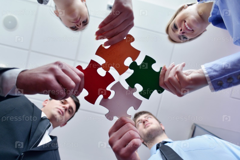 Группа деловых людей собирает пазл