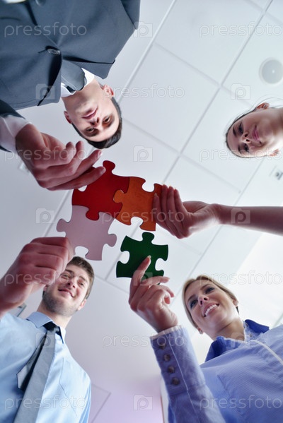 Группа деловых людей собирает пазл