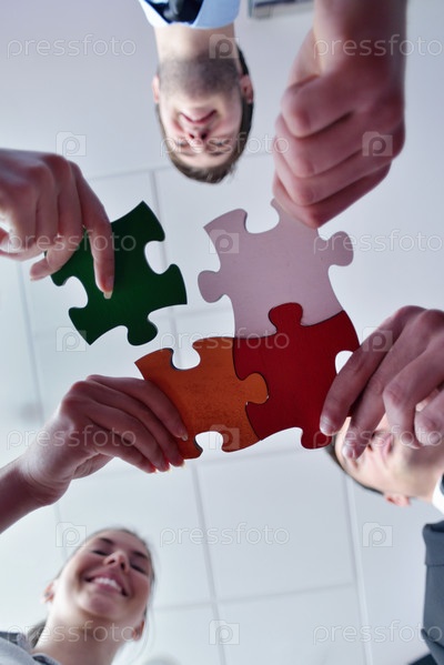 Группа деловых людей собирает пазл