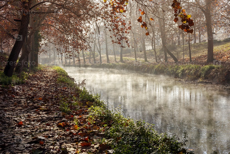 Вид на реку Литеос в Трикале (регион Фессалии, Греция)
