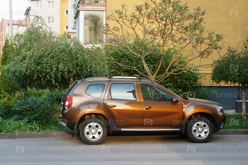 Машина возле дома летним вечером