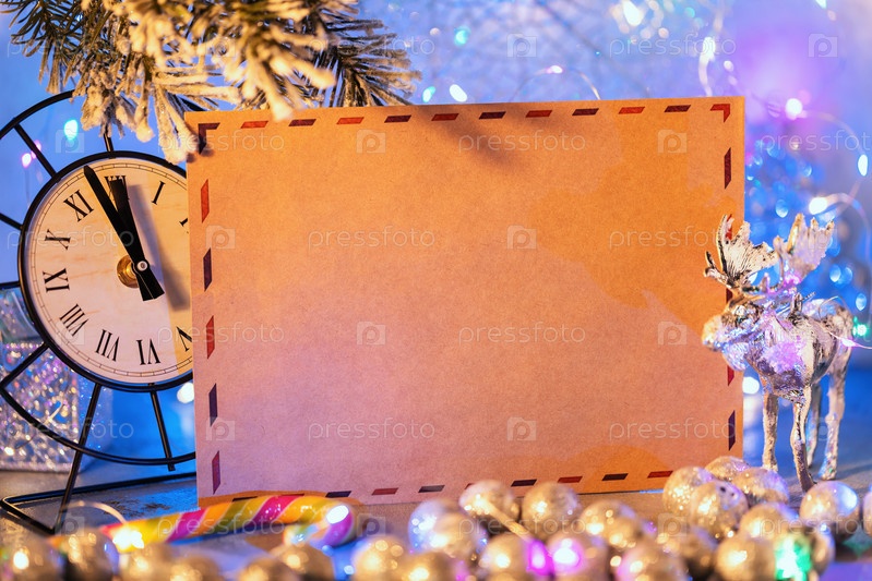 Письмо Деду Морозу в рождественских украшениях, шаблон для дизайнера с местом для текста